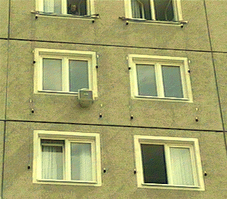 The task is, to detect sources of excitement only by inspecting the channel data. We worked with 16 microphones hanging out of the window (left picture) in the eights floor (Gefell MK250, 1/2", 50mV/Pa, 5x6 meter- array). The right picture shows the view out of this window.