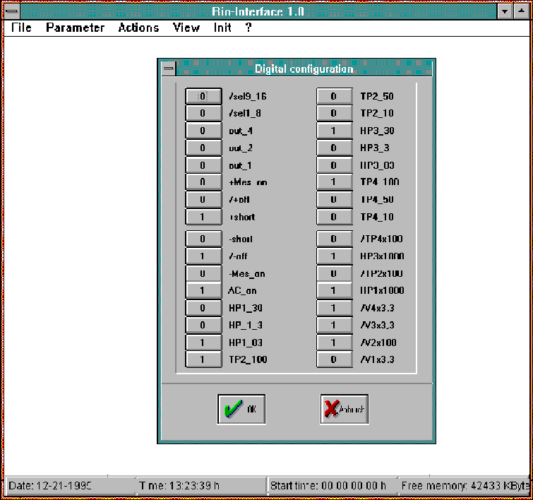 32 Bit preamplifier configuration menue (high- and lowpass filters). The Win30-DS-card had a 12-Bit ADC with low resolution. So filtering was done in hardware before AD-conversion.
