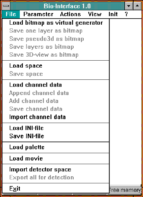 Daneben besaß es eine Schnittstelle zu einem Mehrkanal-Datenrecorder (8 Kanäle, später 16 Kanäle mit 50 kS/s und 12 Bit ADC-Karte Win30-DS). Mit diesem wurden auch elektrische (EEG/EMG) und akustische Aufnahmen möglich, siehe auch den Help-File von 1998 (HLP). Ein Help-File von 1996 ist auch noch vorhanden: (HLP).