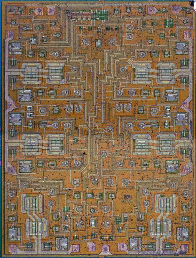 Bild 12: Mit dem Erscheinen erster, digitaler ICs erschien auch der erste integrierte Analogschaltkreis der DDR, der Differenzverstärker IK72. Entwickelt wurde er für das Interkosmos-Programm des AdW Institut für Kosmosforschung (AdW-IKF) in Berlin-Adlershof (heute DLR). Er besaß drei Transistoren, eine Diode und einen Widerstand. Bilder mit freundlicher Genehmigung von Richard Kaussler, siehe auch die komplette Rückübersetzung auf seiner Seite [75].