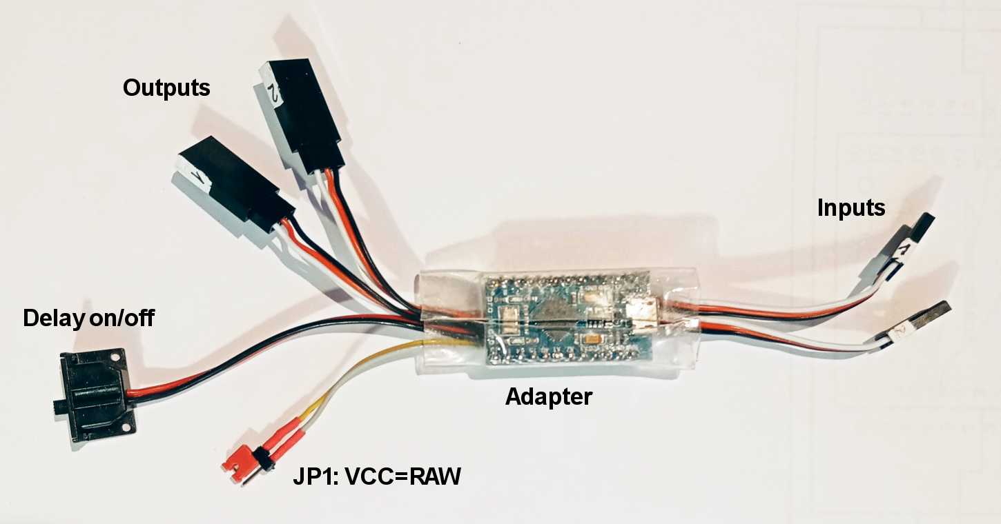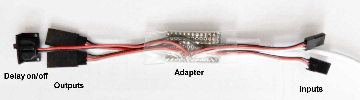Da Servos von Funkfernsteuerungen (FFS) mit Pulsweitenmodulation arbeiten, lag die Idee nahe, ein Verzögerungsmodul von 2,5 Sekunden zwischen Funkempfänger und Servo-Antrieben zu schalten.