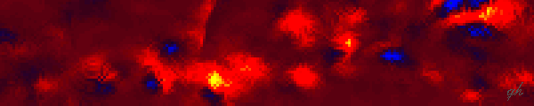 Data: 16-channel reconstructive interference integral; PSI-Tools Virtual Screen: 200m x 40m, virtual focus at 170 meter. The lower border of the image was set on the horizont line. Location Rudower Chaussee 5, Geb. 13.7 (now: Albert-Einstein-Str. 16), 8th floor in northern direction (NNW) see Fig.1. Microphone-array 16 chls., 6x5m. Algorithm: multiplication of monopolarized time functions. Recorded at 8.8.1996, 10pm. Channel data 0808_27.chl, 10 kS/s, interval 7000...8000, 1/10 sec., longer integrals become softer.